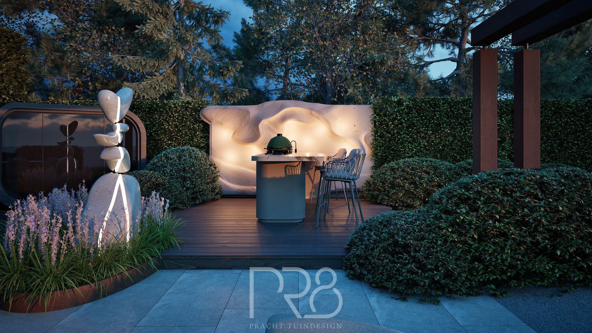 Deze boerderijtuin combineert rust, luxe en kunst. Van een volledig uitgeruste fitnessruimte tot de ultime mogelijkheid om te ontspannen bij een sfeervol vuur; deze buitenruimte biedt alles wat nodig is voor ultiem comfort en ontspanning, zonder het huis te verlaten.